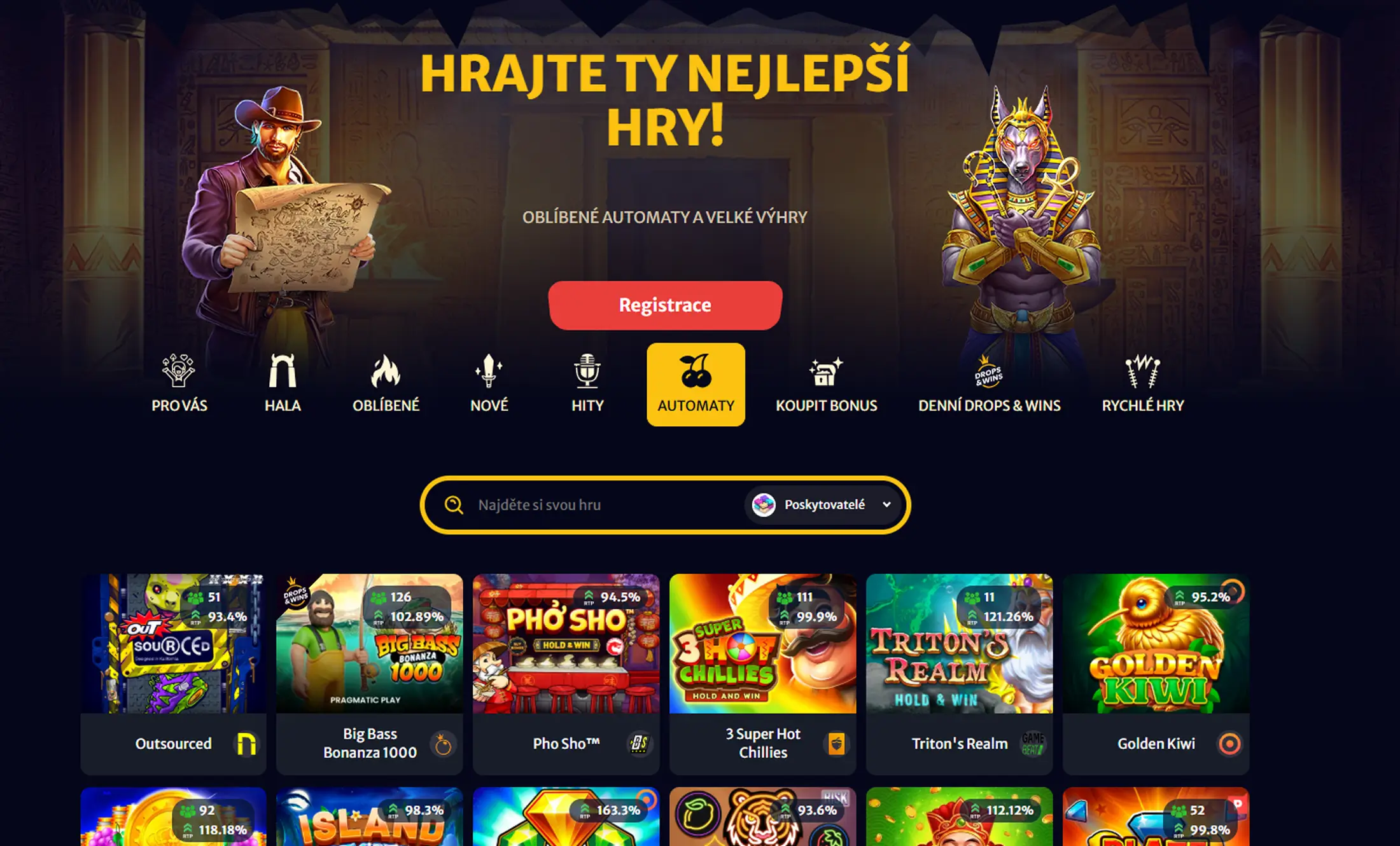 Co je osvěžující – lobby je velmi dobře uspořádané. Můžete filtrovat podle poskytovatele, volatility nebo typu funkcí. Pokud máte chuť na vysokou volatilitu a velké jackpoty, najdete je na pár kliknutí. A pokud dáváte přednost častějším menším výhrám, jednoduše si vyberete sloty s RTP nad 96 %.